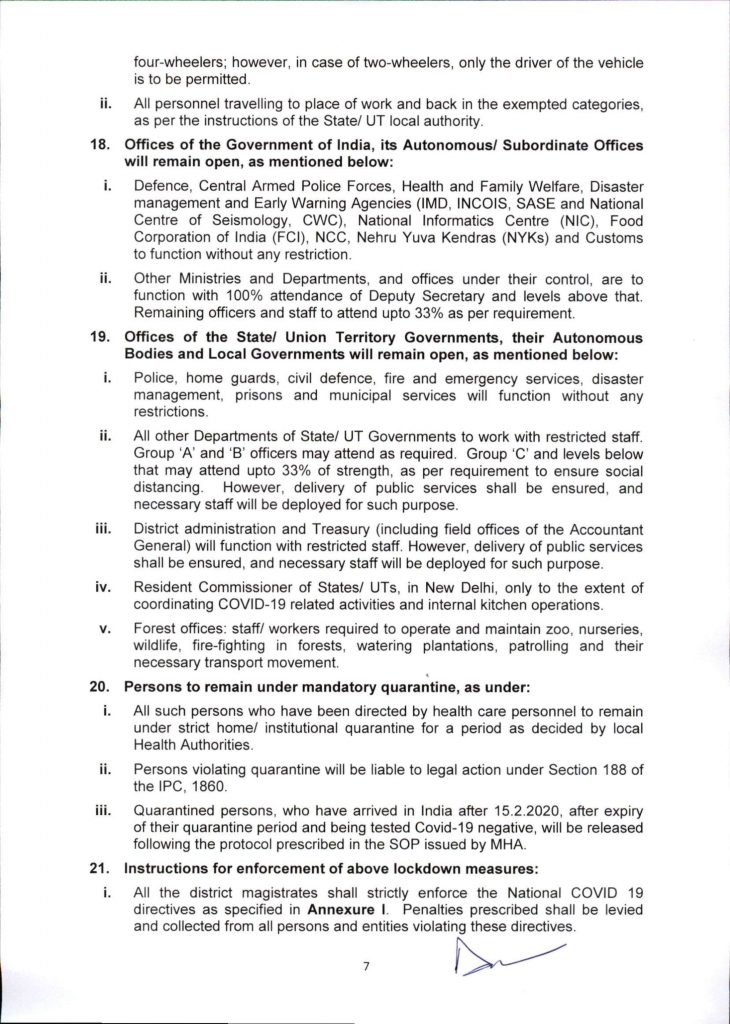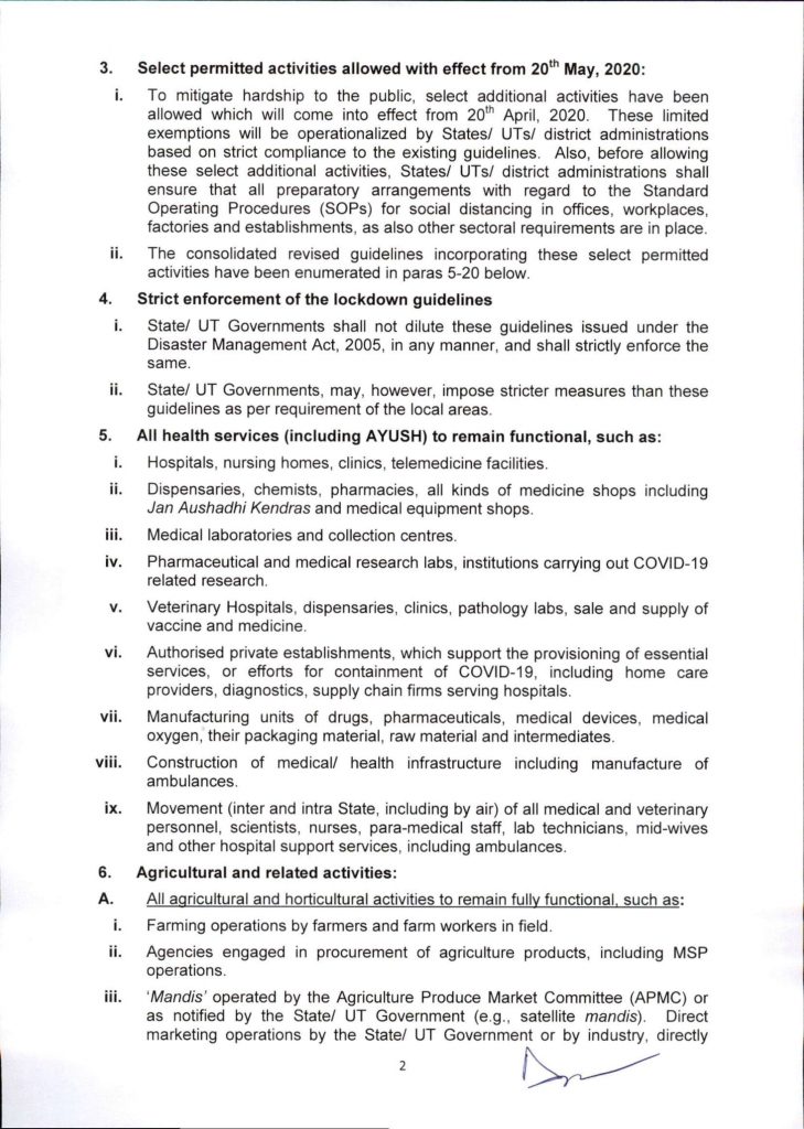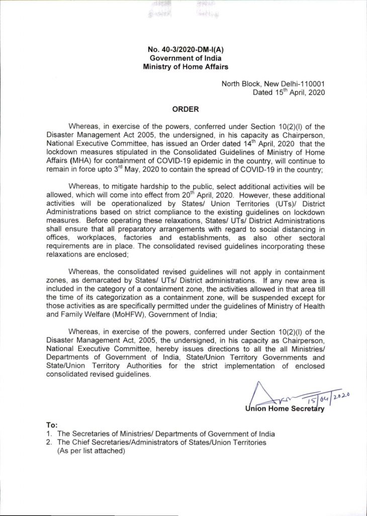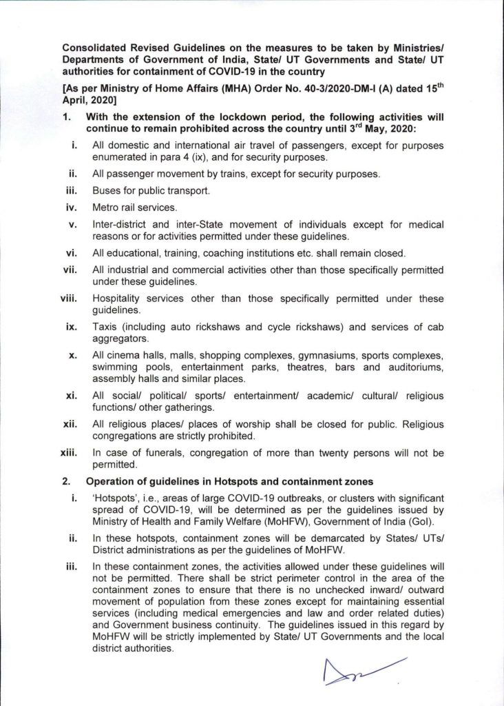 MHA issues Consolidated Revised Guidelines for the Containment of COVID-19 epidemic in the Country – 15/04/2020